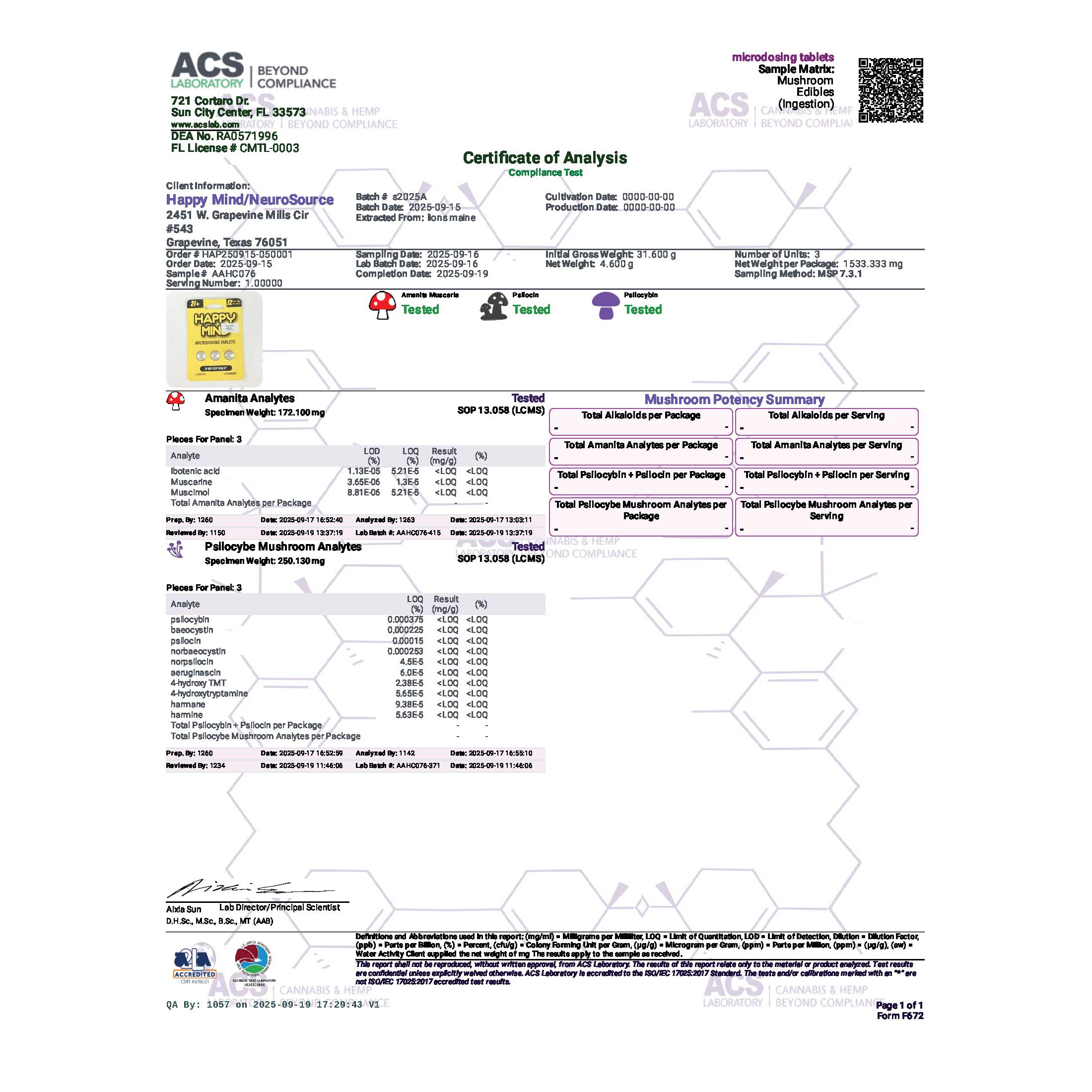 Happy Mind Spearmint Microdose Mushroom Tablets are precision-dosed mushroom tablets designed to support enhanced mental clarity, heightened awareness, and a more intentional cognitive experience in a convenient, easy-to-use format.